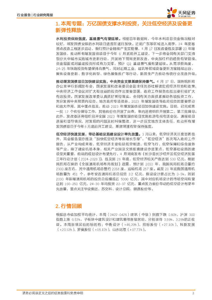 天风证券:建筑装饰行业研究周报:万亿国债支撑水利投资,关注低空经济及设备更新弹性释放.pdf