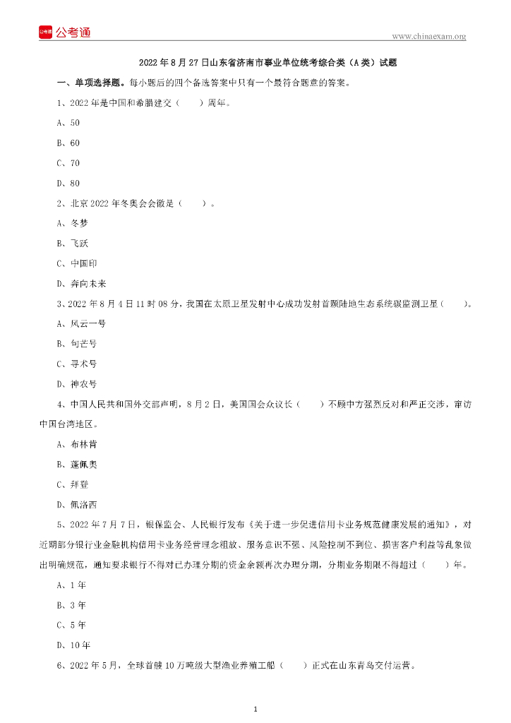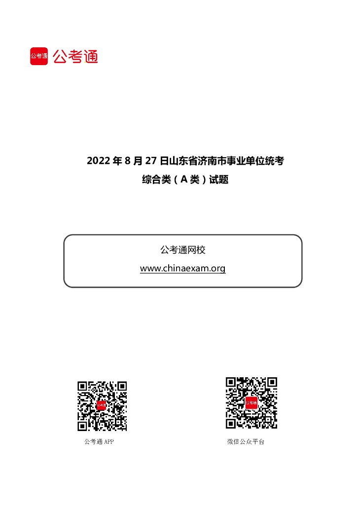 2022年8月27日山东省济南市事业单位统考综合类(A类)试题.pdf