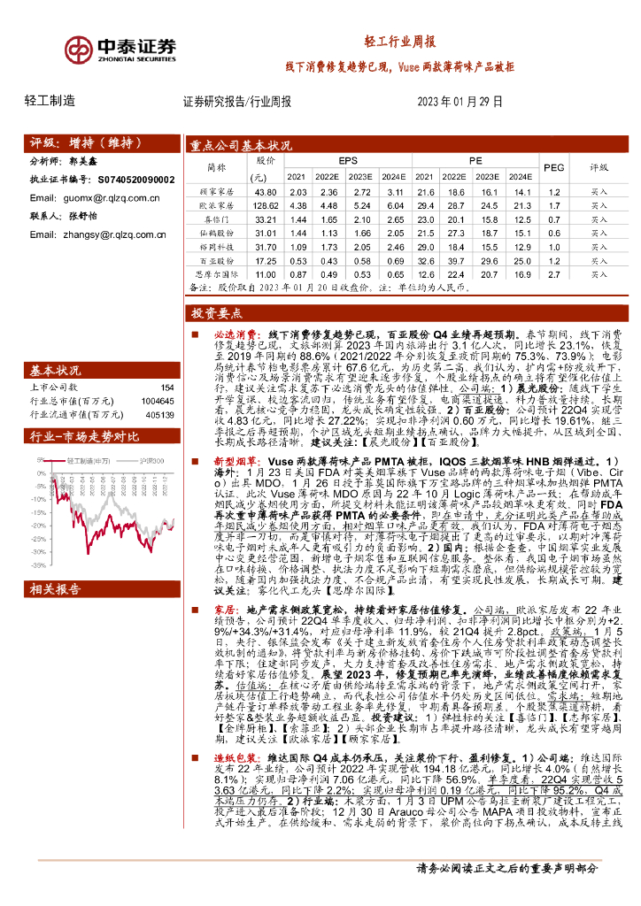 中泰证券:轻工行业周报:线下消费修复趋势已现,Vuse两款薄荷味产品被拒.pdf