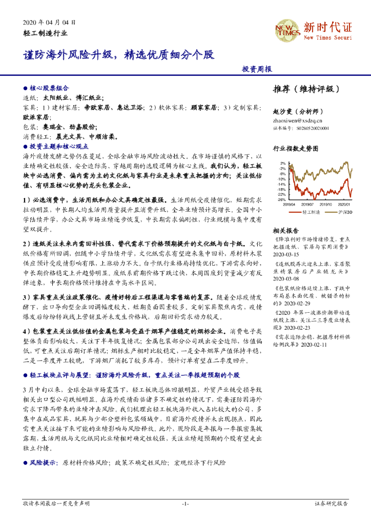 新时代证券:轻工制造行业投资周报:谨防海外风险升级,精选优质细分个股.pdf