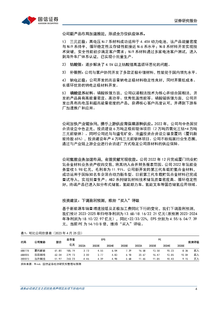 国信证券:厦钨新能(688778)-2022年报及2023年一季报点评:三元销量快速提升,多元业务协同发展.pdf