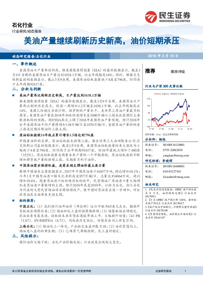 民生证券:石化行业:美油产量继续刷新历史新高,油价短期承压.pdf