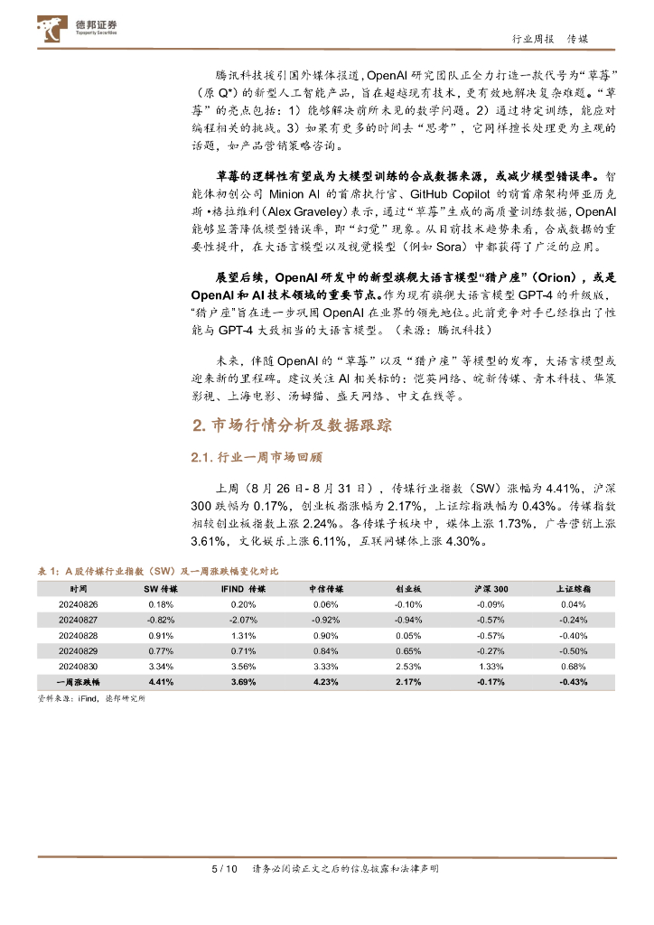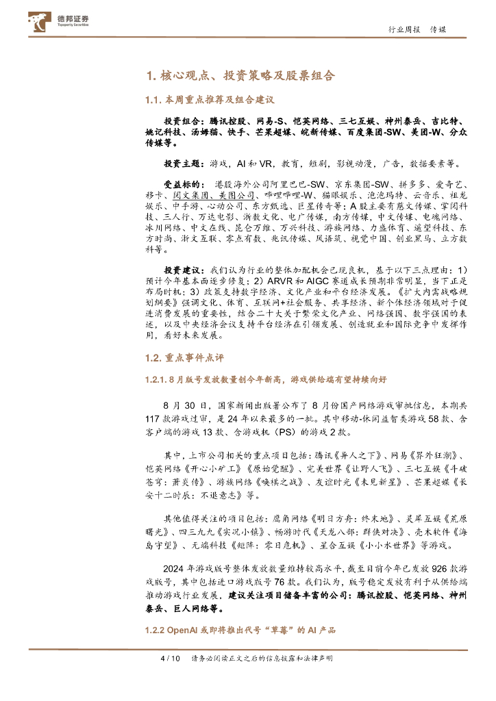德邦证券:传媒互联网行业周报:8月版号数量创年内新高;OpenAI或将发布“草莓”大模型.pdf