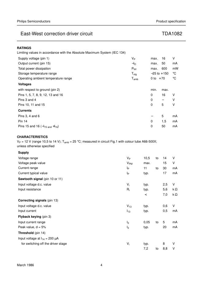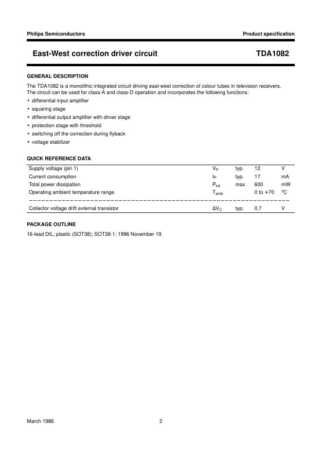 PHILIPS TDA1082 East-West correction driver circuit 数据手册.pdf