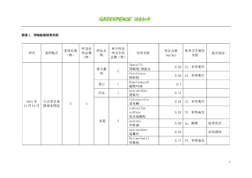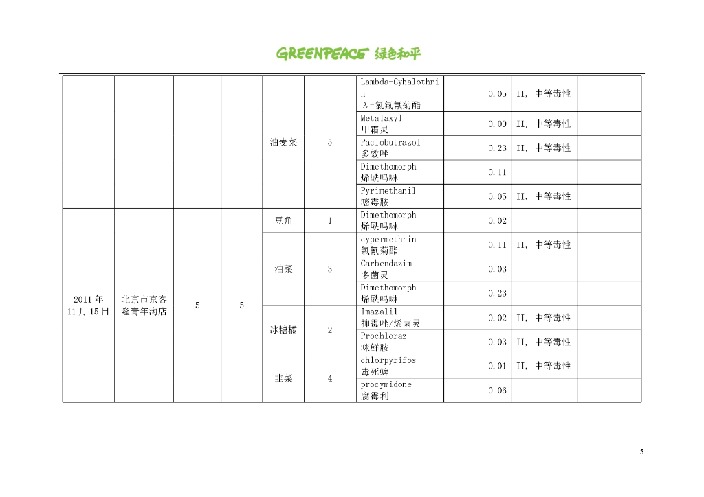 绿色和平:2011年末绿色和平超市蔬果农药残留检测报告.pdf