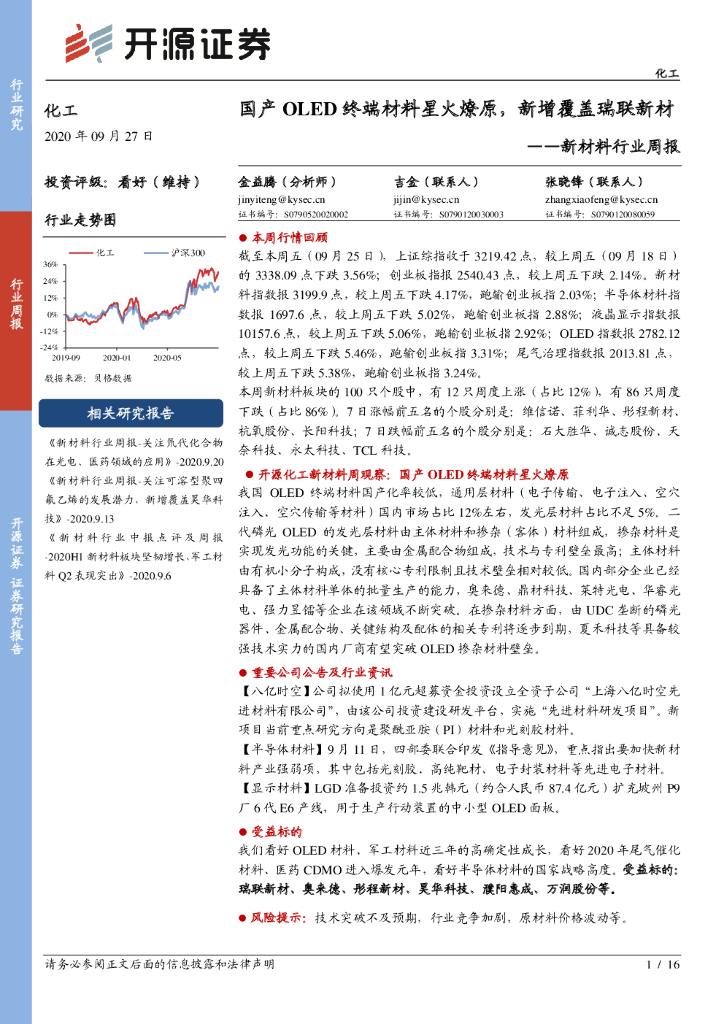 开源证券:新材料行业周报:国产OLED终端材料星火燎原,新增覆盖瑞联新材.pdf