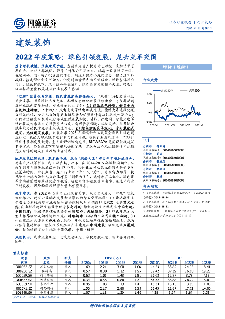 国盛证券:建筑装饰2022年度策略:绿色引领发展,龙头变革突围.pdf