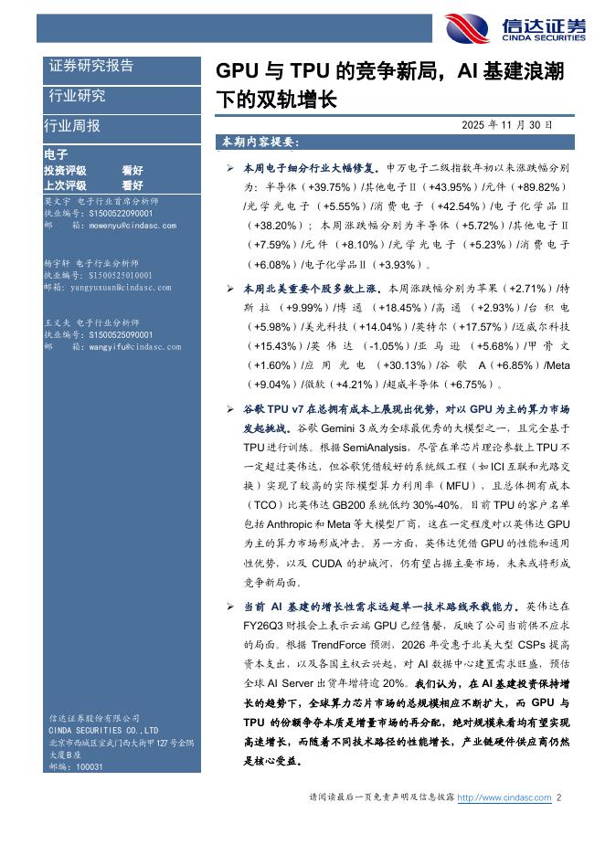 信达证券:电子行业周报:GPU与TPU的竞争新局,AI基建浪潮下的双轨增长.pdf