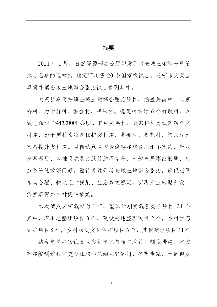四川省遂宁市大英县卓筒井镇全域土地综合整治试点实施方案.pdf