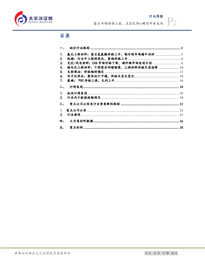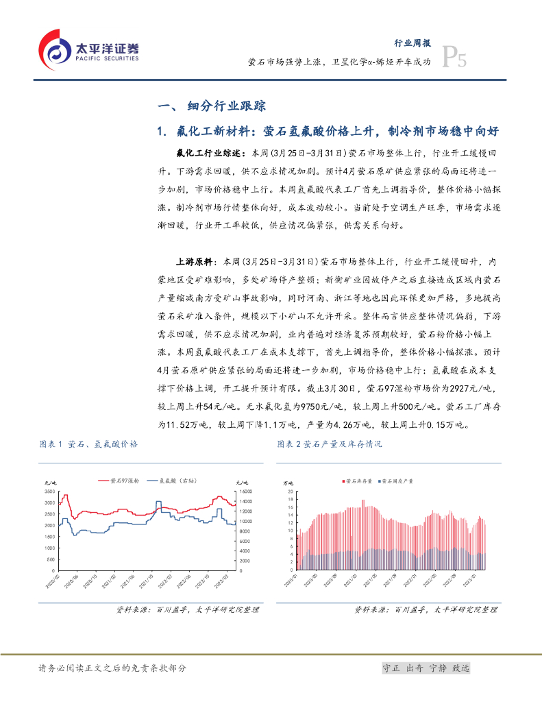 太平洋证券:化工&新材料行业周报:萤石市场强势上涨,卫星化学α-烯烃开车成功.pdf
