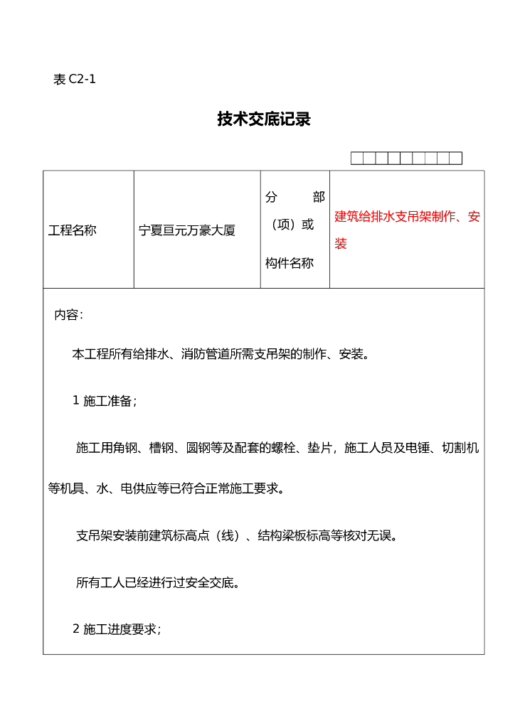 角钢槽钢圆钢管道支吊架制作安装技术交底.doc