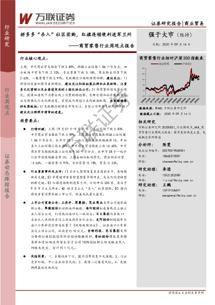 万联证券:商贸零售行业周观点报告:拼多多“杀入”社区团购,红旗连锁便利进军兰州.pdf