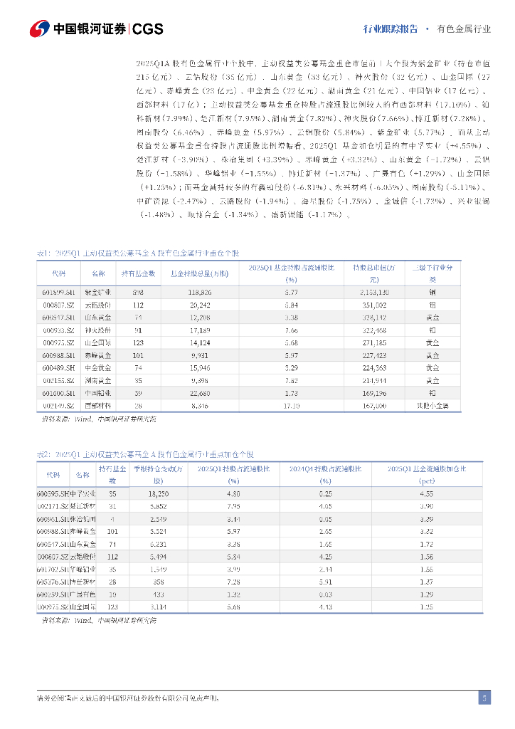 中国银河:A股有色金属行业2025Q1基金持仓分析:基金重新增持有色金属行业,回补金铜仓位.pdf