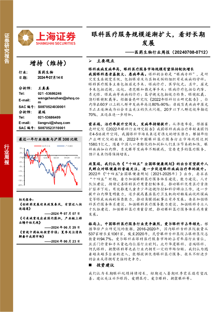 上海证券:医药生物行业周报:眼科医疗服务规模逐渐扩大,看好长期发展.pdf
