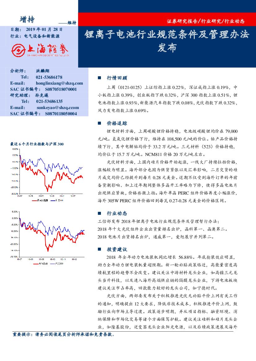 上海证券:电气设备和新能源行业动态:锂离子电池行业规范条件及管理办法发布.pdf