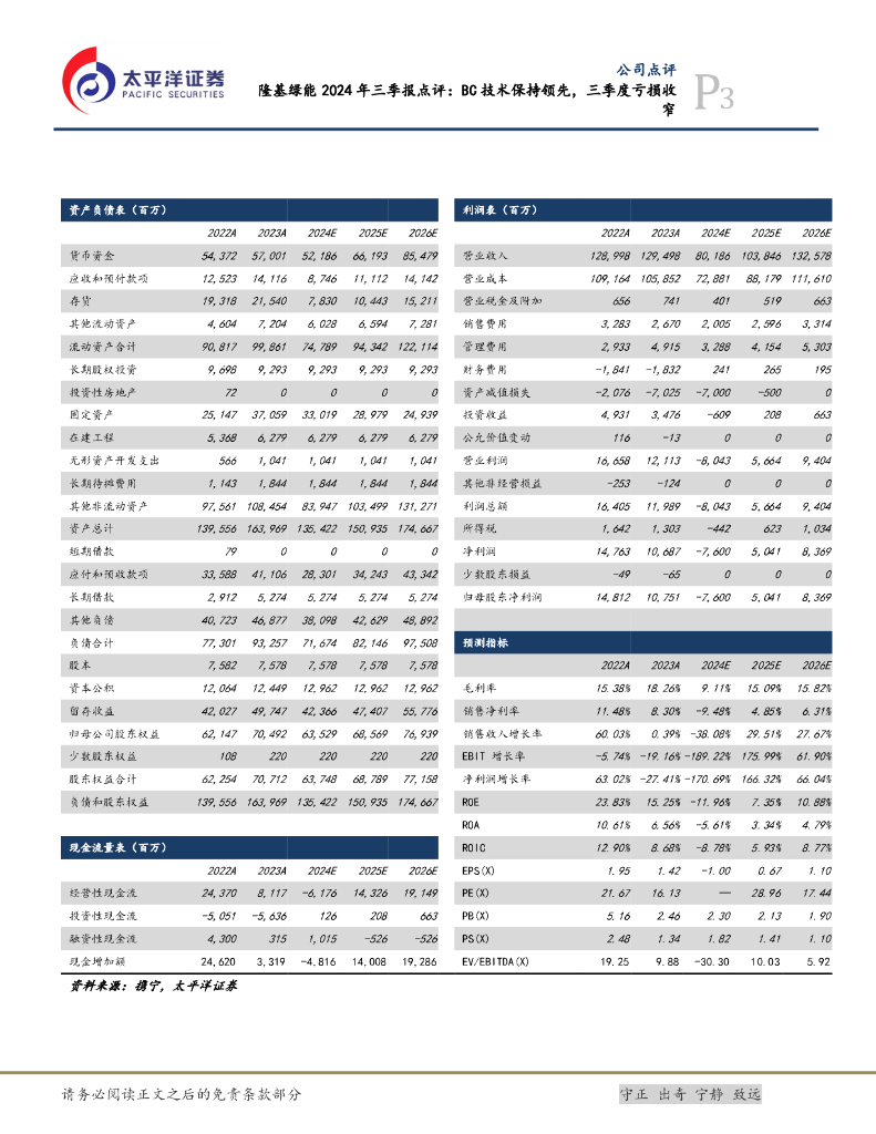 太平洋证券:隆基绿能2024年三季报点评:BC技术保持领先,三季度亏损收窄.pdf