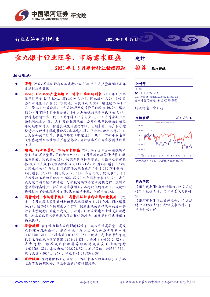 中国银河:2021年1-8月建材行业数据跟踪:金九银十行业旺季,市场需求旺盛.pdf