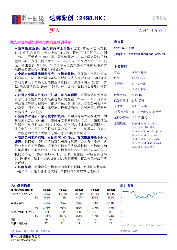 第一上海证券:速腾聚创(02498)港股公司研究报告-激光雷达和感知解决方案的全球领导者.pdf