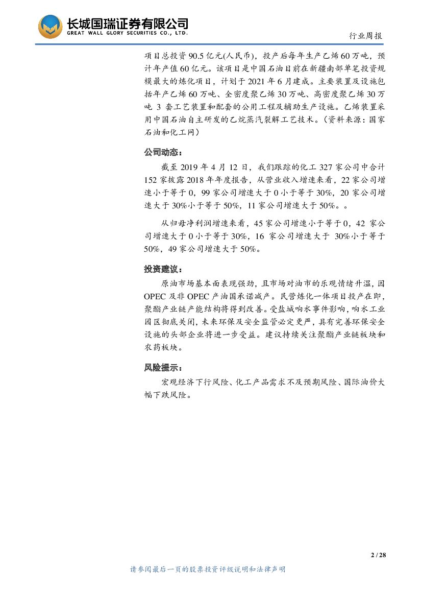 长城国瑞证券:化工行业双周报2019年第7期(总第7期):原油市场基本面表现强劲,江苏盐城彻底关闭响水化工园区.pdf