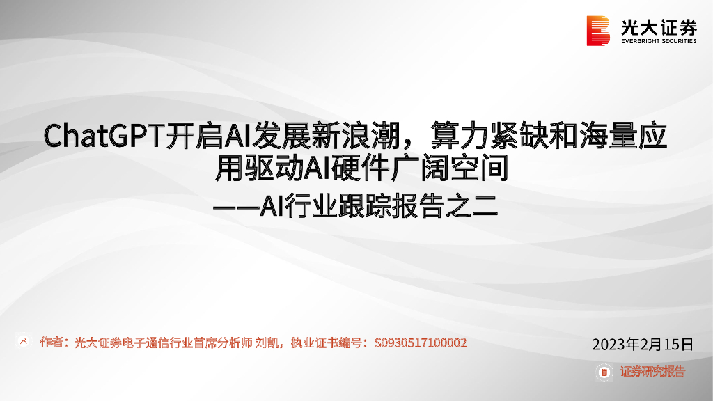 光大证券:AI行业跟踪报告之二:ChatGPT开启AI发展新浪潮,算力紧缺和海量应用驱动AI硬件广阔空间.pdf