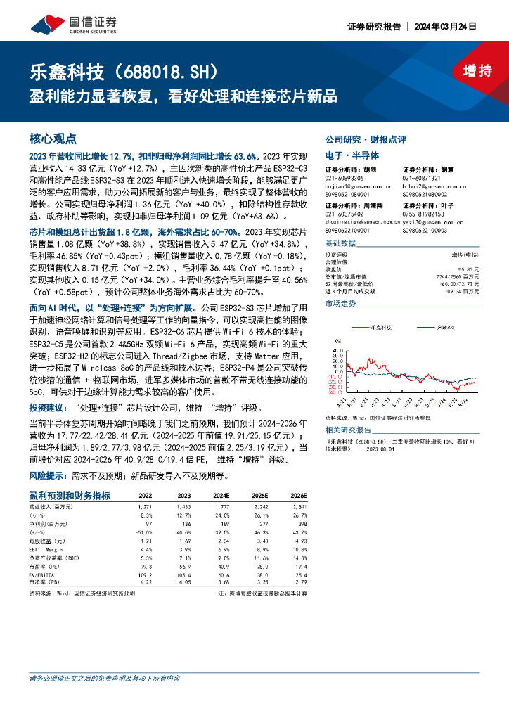 国信证券:乐鑫科技(688018)-盈利能力显著恢复,看好处理和连接芯片新品.pdf