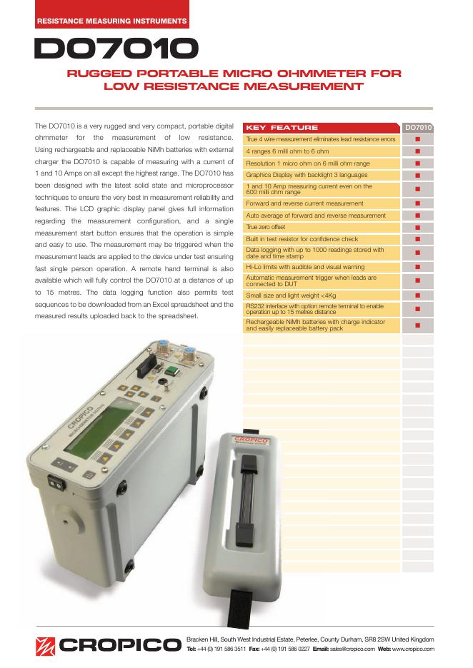 CROPICO D07010 RUGGED PORTABLE MICRO OHMMETER FOR LOW RESISTANCE MEASUREMENT 使用手册.pdf