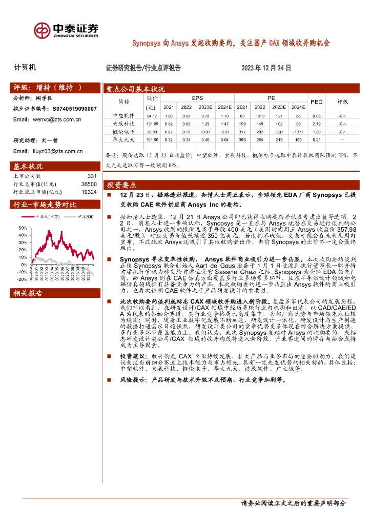 中泰证券:计算机:Synopsys向Ansys发起收购要约,关注国产CAX领域收并购机会.pdf