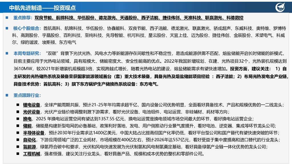 中航证券:先进制造行业周报:熔盐储能开启长时储能新模式,光热电站项目释放有望推动需求增长.pdf