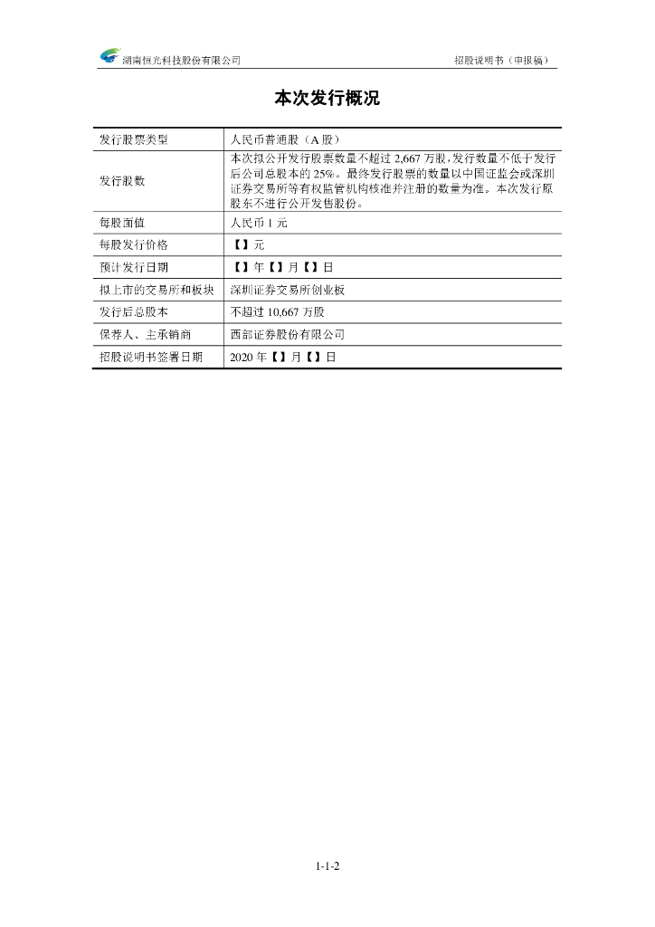 湖南恒光科技股份有限公司深交所创业板IPO上市招股说明书.pdf