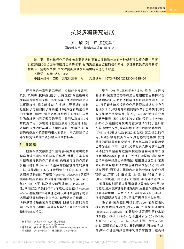 《药学的生物化学基础》文献资料-抗炎多糖研究进展.pdf