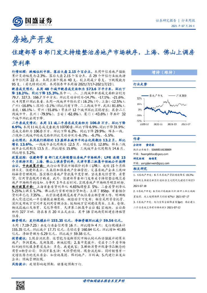 国盛证券:房地产开发行业周报:住建部等8部门发文持续整治房地产市场秩序,上海、佛山上调房贷利率.pdf