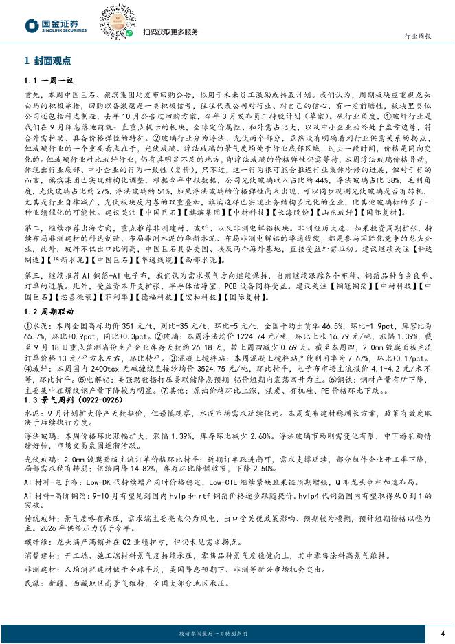 国金证券:非金属建材周观点:提示重视玻纤龙头、玻璃龙头的回购公告.pdf