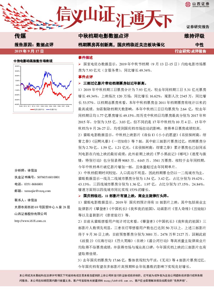 山西证券:中秋档期电影数据点评:档期票房再创新高,国庆档临近关注板块催化.pdf