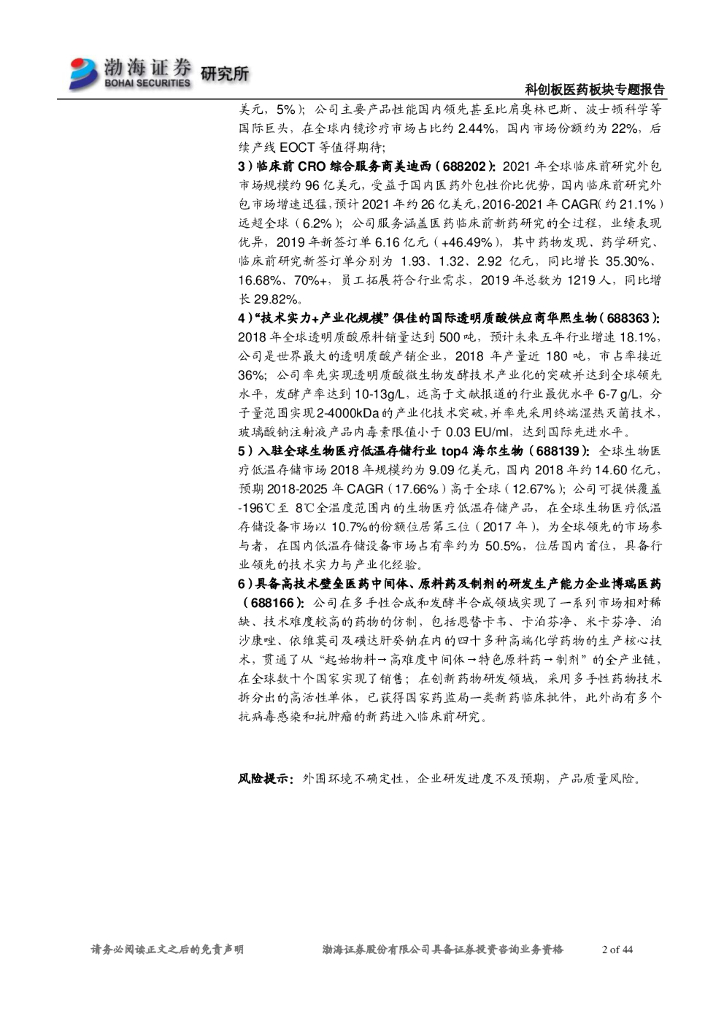渤海证券:科创板医药板块专题报告:经营数据全面超A下的投资机会分析.pdf