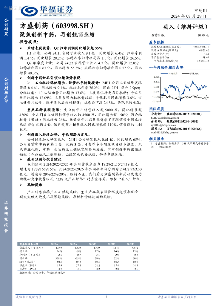 华福证券:方盛制药(603998)-聚焦创新中药,再创靓丽业绩.pdf