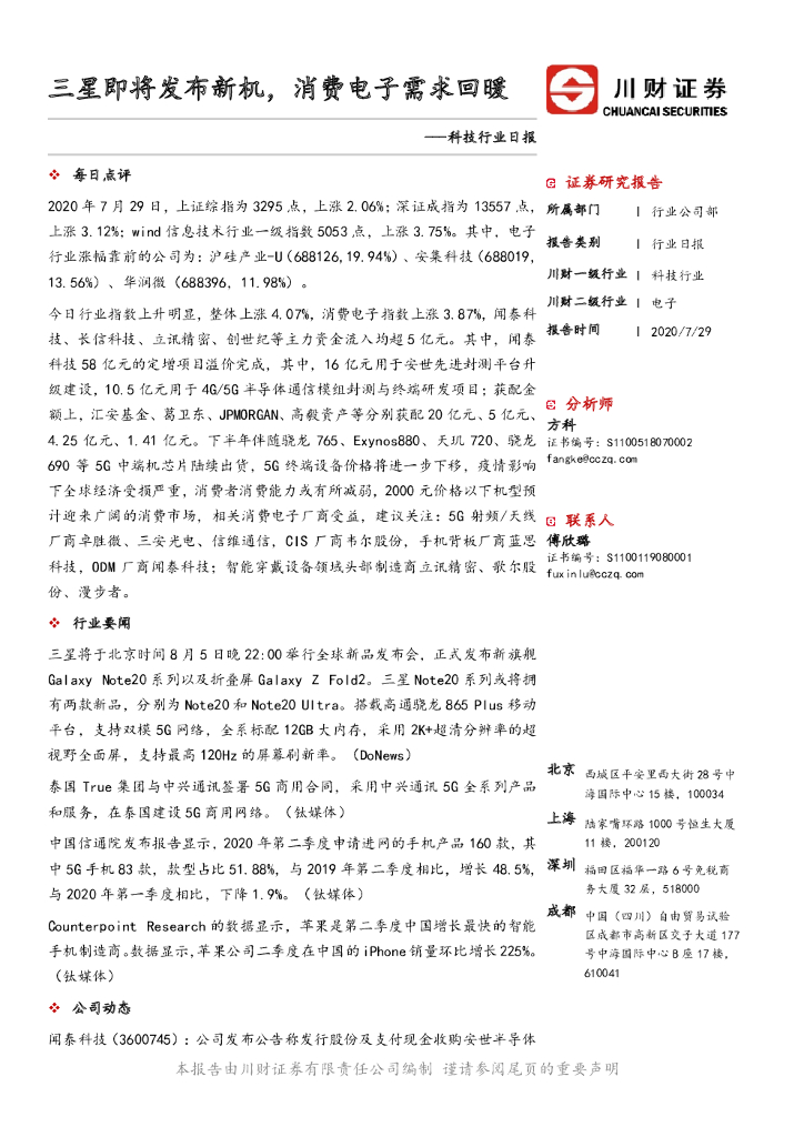 川财证券:科技行业日报:三星即将发布新机,消费电子需求回暖.pdf