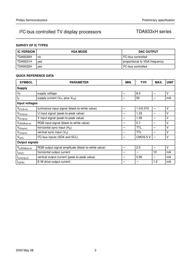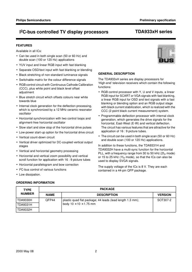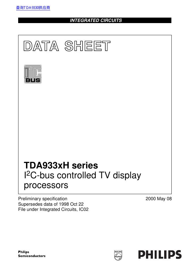 philips TDA933xH series I2 C-bus controlled TV display processors 数据手册.pdf