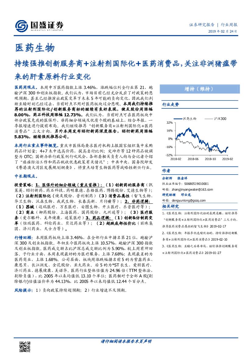 国盛证券:医药生物行业周报:持续强推创新服务商+注射剂国际化+医药消费品,关注非洲猪瘟带来的肝素原料行业变化.pdf