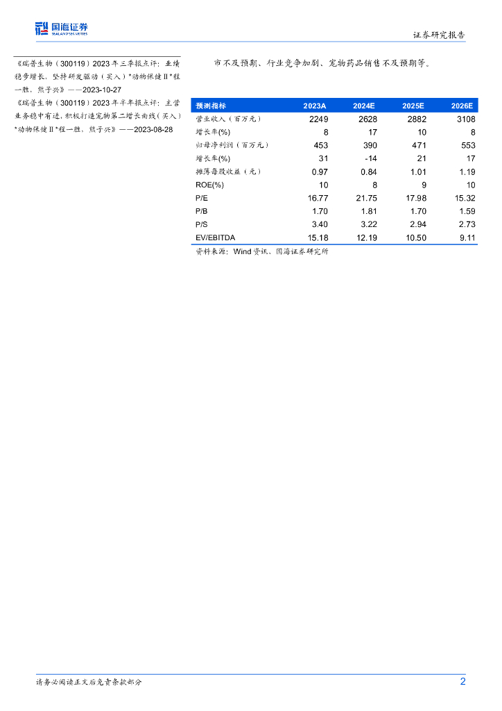 国海证券:瑞普生物(300119)-2024年三季报点评:经营业绩环比改善,公司中长期发展向好.pdf