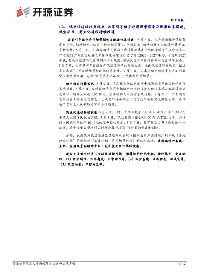 开源证券:电力设备行业周报:低空经济行业周报(5月第2周):沃兰特获100架eVTOL订单,小鹏汇天PC证正式获民航局受理.pdf
