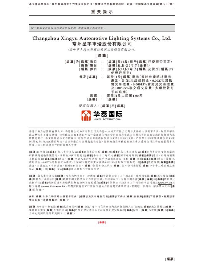 常州星宇车灯股份有限公司港交所IPO上市招股说明书.pdf