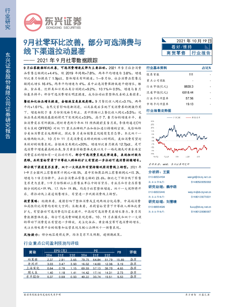 东兴证券:商贸零售2021年9月社零数据跟踪:9月社零环比改善,部分可选消费与线下渠道拉动显著.pdf
