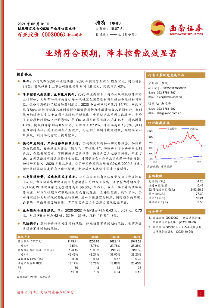 西南证券:百亚股份(003006)-业绩符合预期,降本控费成效显著.pdf