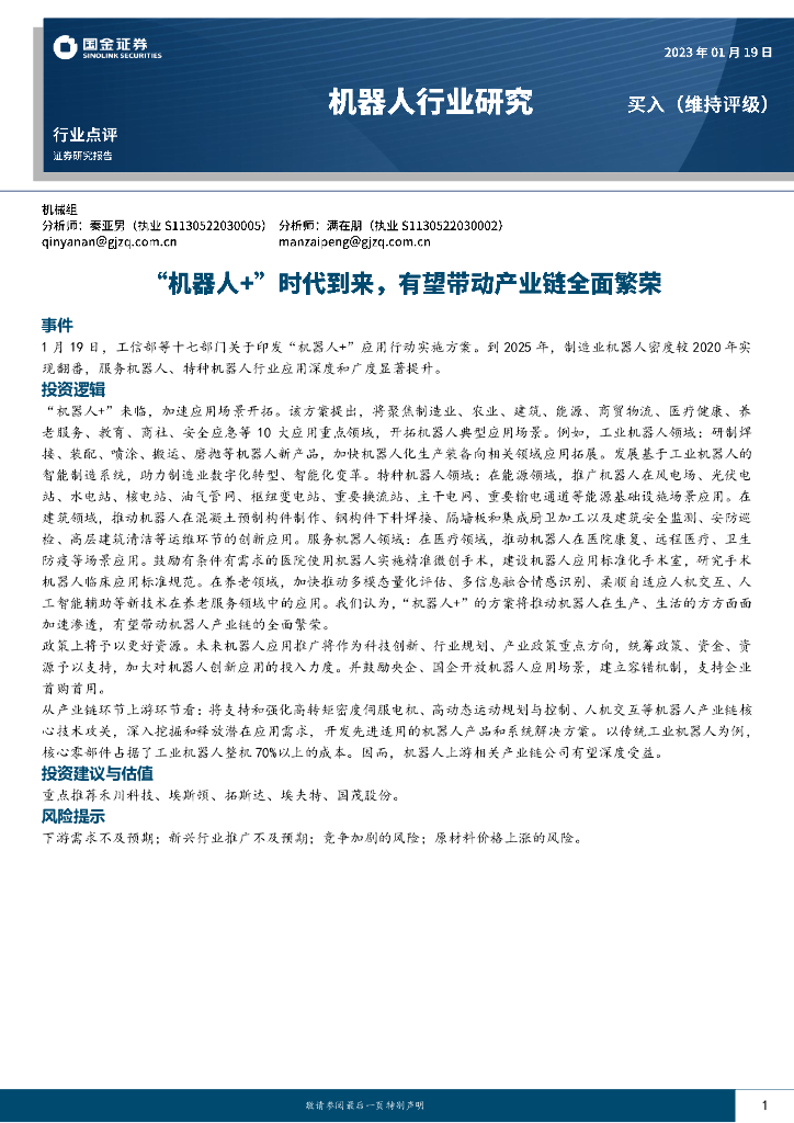 国金证券:机器人行业研究:“机器人+”时代到来,有望带动产业链全面繁荣.pdf