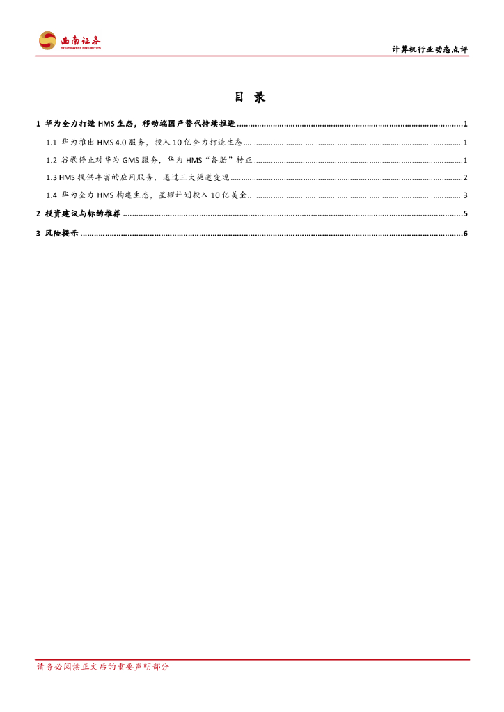 西南证券:计算机行业动态点评:华为发布HMS4.0,移动端有望掀起国产化浪潮.pdf