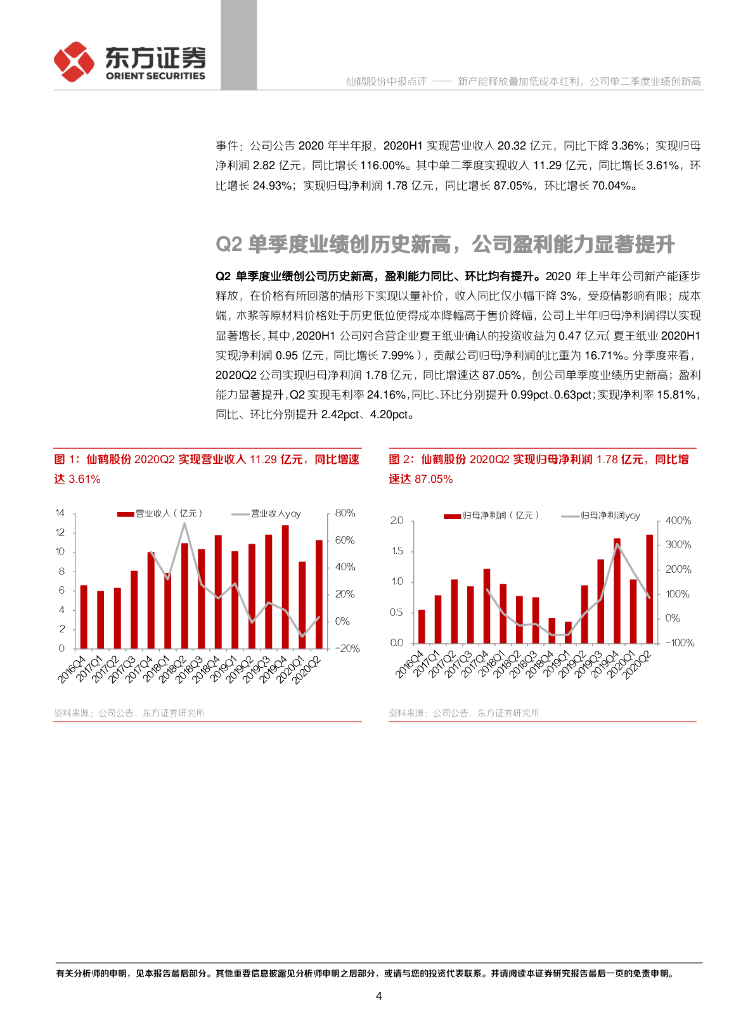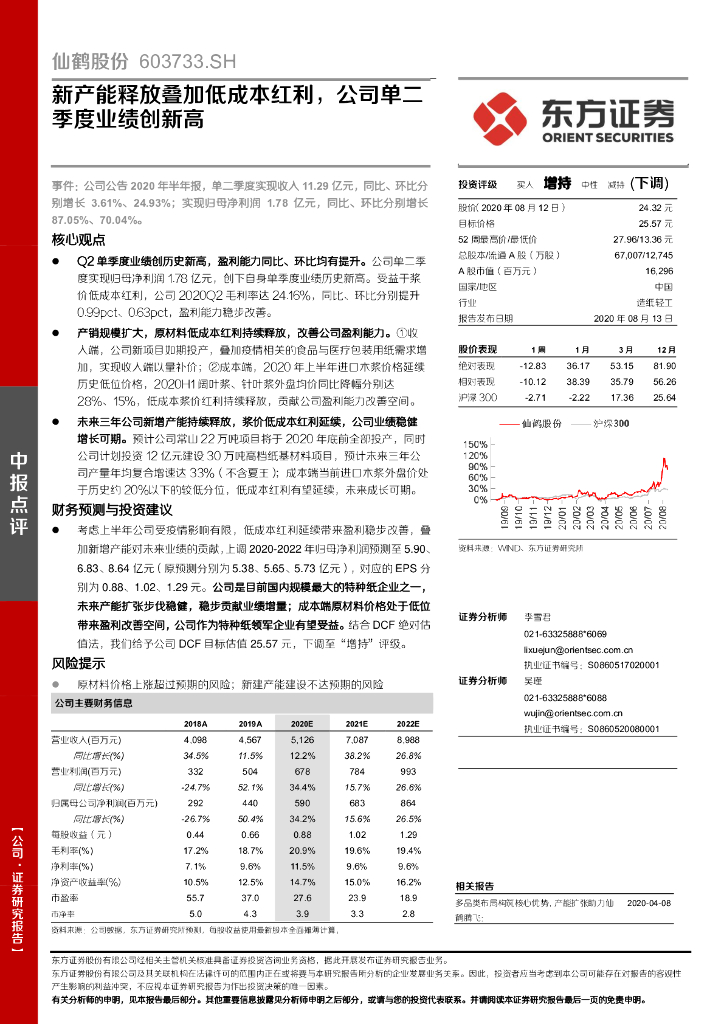 东方证券:仙鹤股份(603733)-新产能释放叠加低成本红利,公司单二季度业绩创新高.pdf
