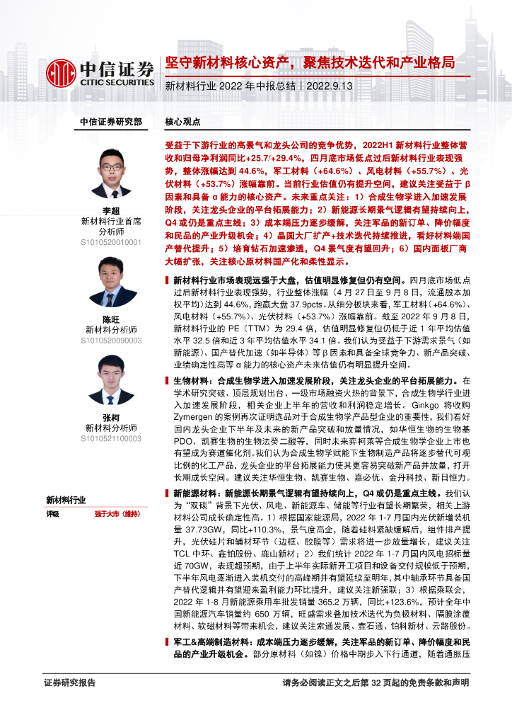 中信证券:新材料行业2022年中报总结:坚守新材料核心资产,聚焦技术迭代和产业格局.pdf