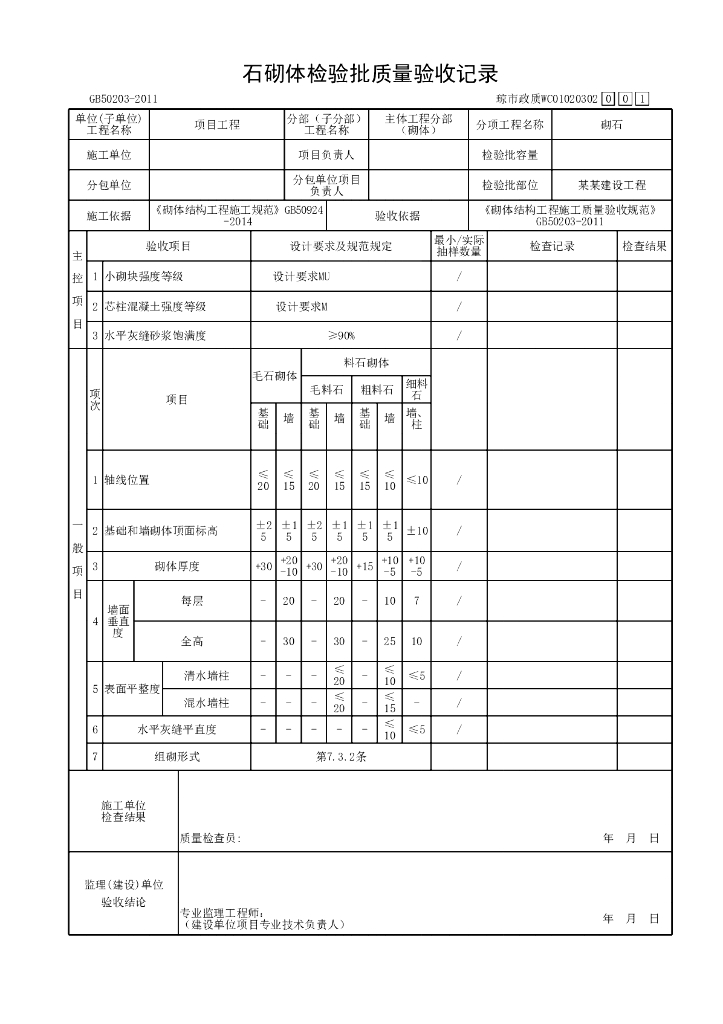 海南省市政污水处理厂砌体验收资料表格.pdf