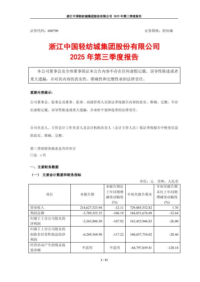 600790-轻纺城:轻纺城2025年第三季度报告.pdf