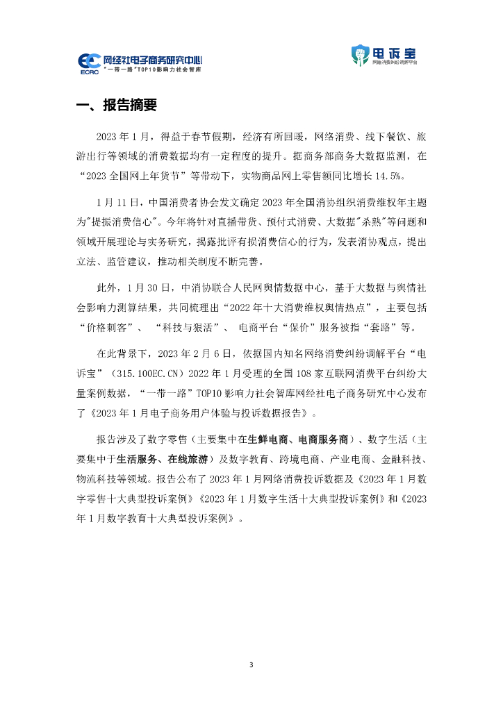 网经社:2023年1月中国电子商务用户体验与投诉数据报告.pdf